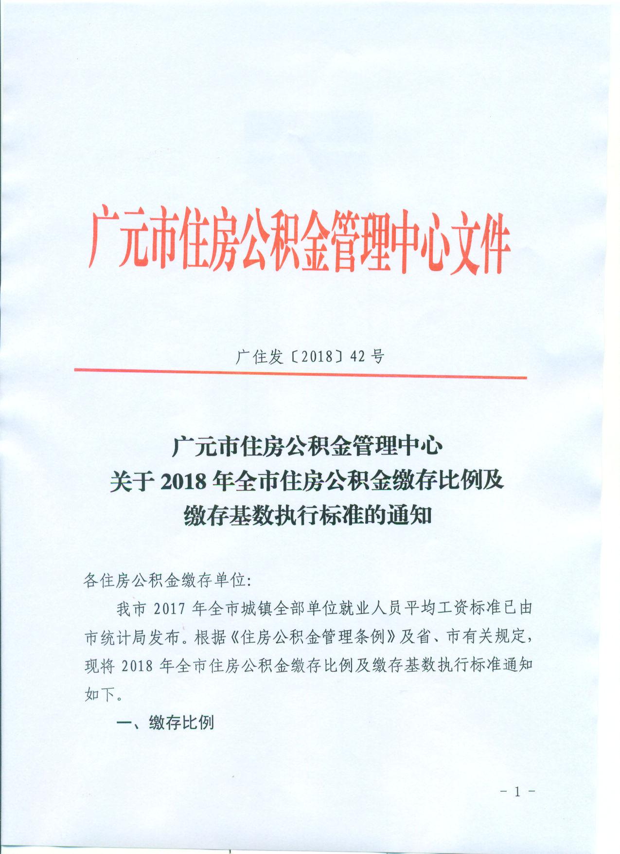 广元市住房公积金管理中心关于2018年全市住房公积金缴存比例及缴存基数执行标准的通知